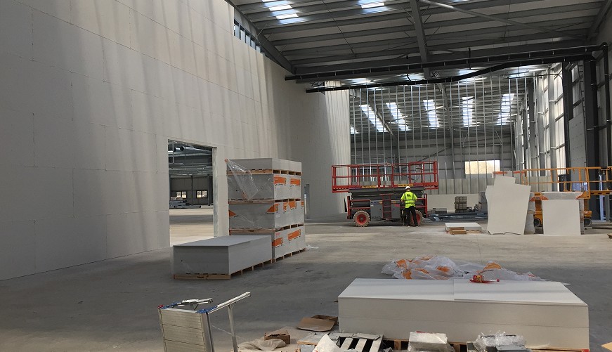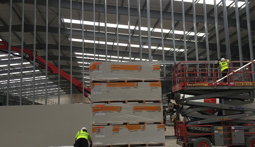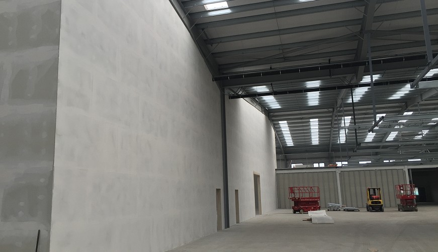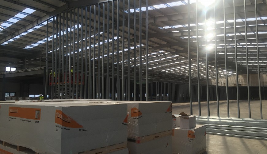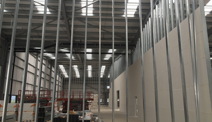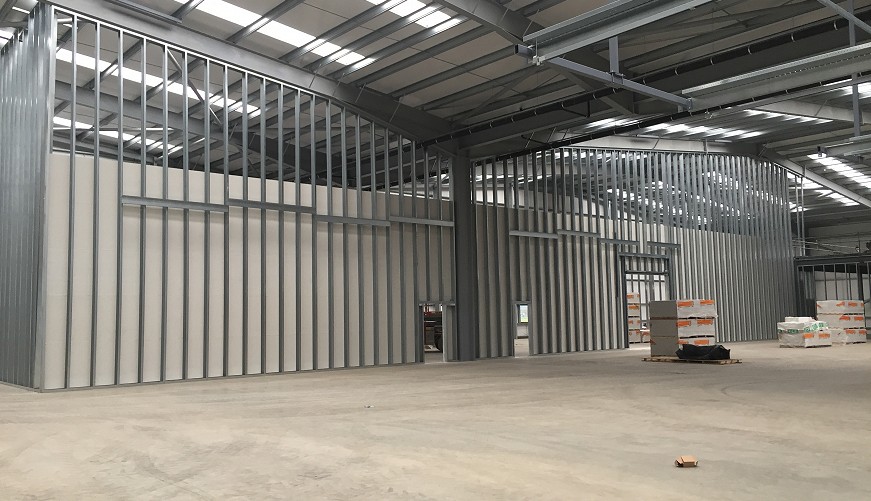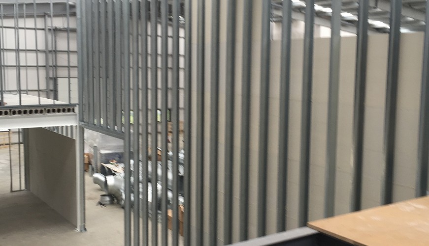 Jumbo Stud Ltd installed over 2000m2 of F60 Jumbo Partitions to big warehouse workspaces at Aim Altitude in Bournemouth, with a mix of smooth painted and industrial finishes.