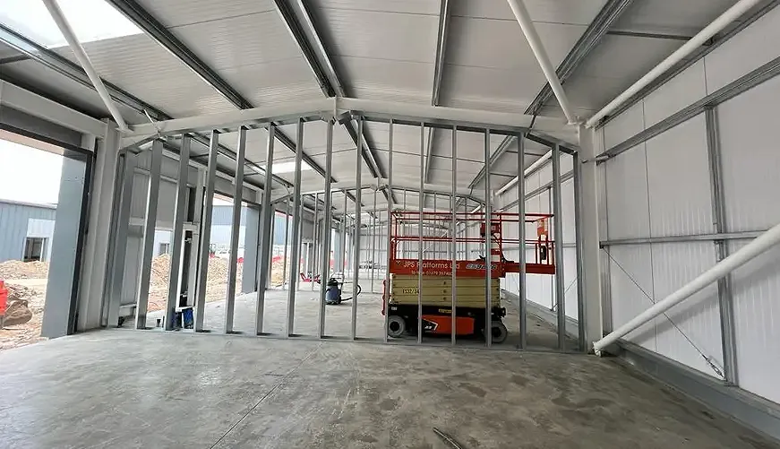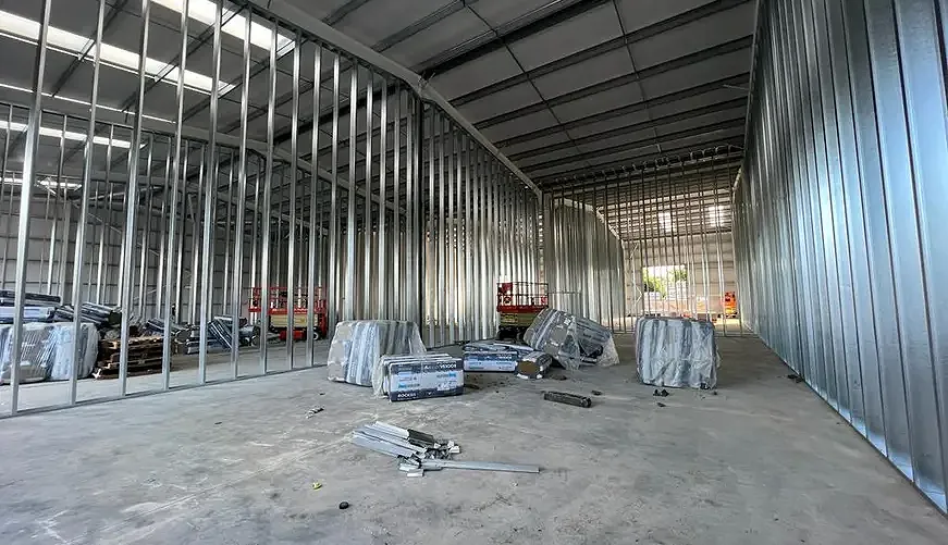 Jumbo Stud Ltd were asked to divide five brand newly built warehouses into 22 separate units.