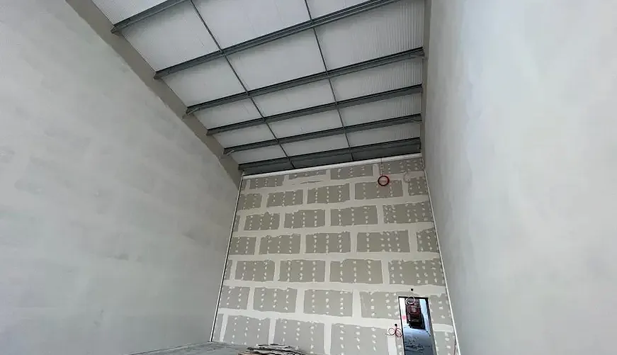 Our most popular system was used to supply and install 1 hour fire-rated walls within the project. The Jumbo Stud F60 Fermacell system was a perfect match for designing the high bay partition walls at different heights according to the different heights of the warehouses.