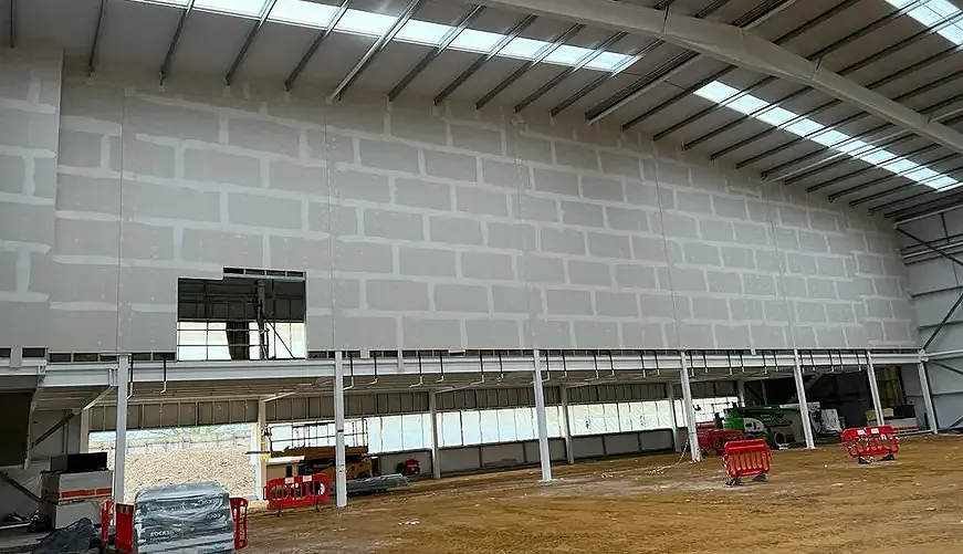Jumbo Stud Ltd fitted out two separate units with our flagship F60 Jumbo Stud Wall partitions, which divided an office area from the warehouse.