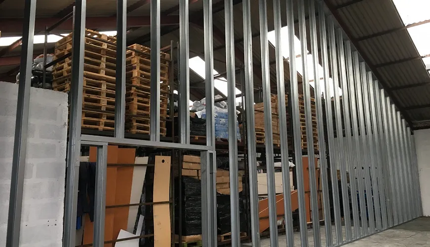 Jumbo Stud Ltd, as an approved Fermacell installer, built this wall for the client in Rotherham to divide their warehouse to secure one side from the other with fire-rated jumbo stud wall partition to give a 60 min fire protection and 54dB sound reduction.