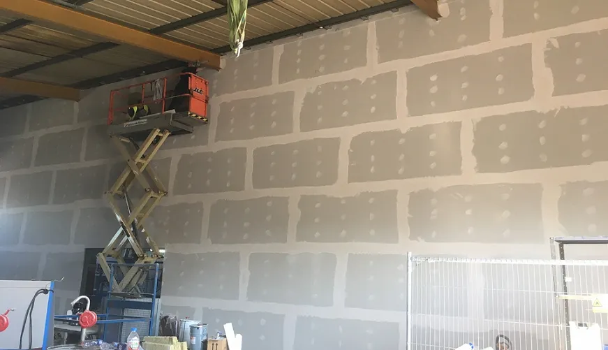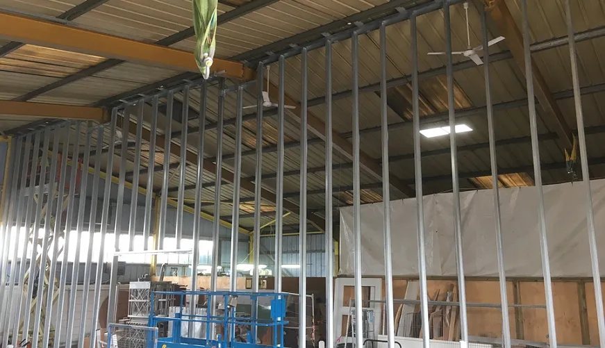 - High bay stud partition wall build up to 8 m height.